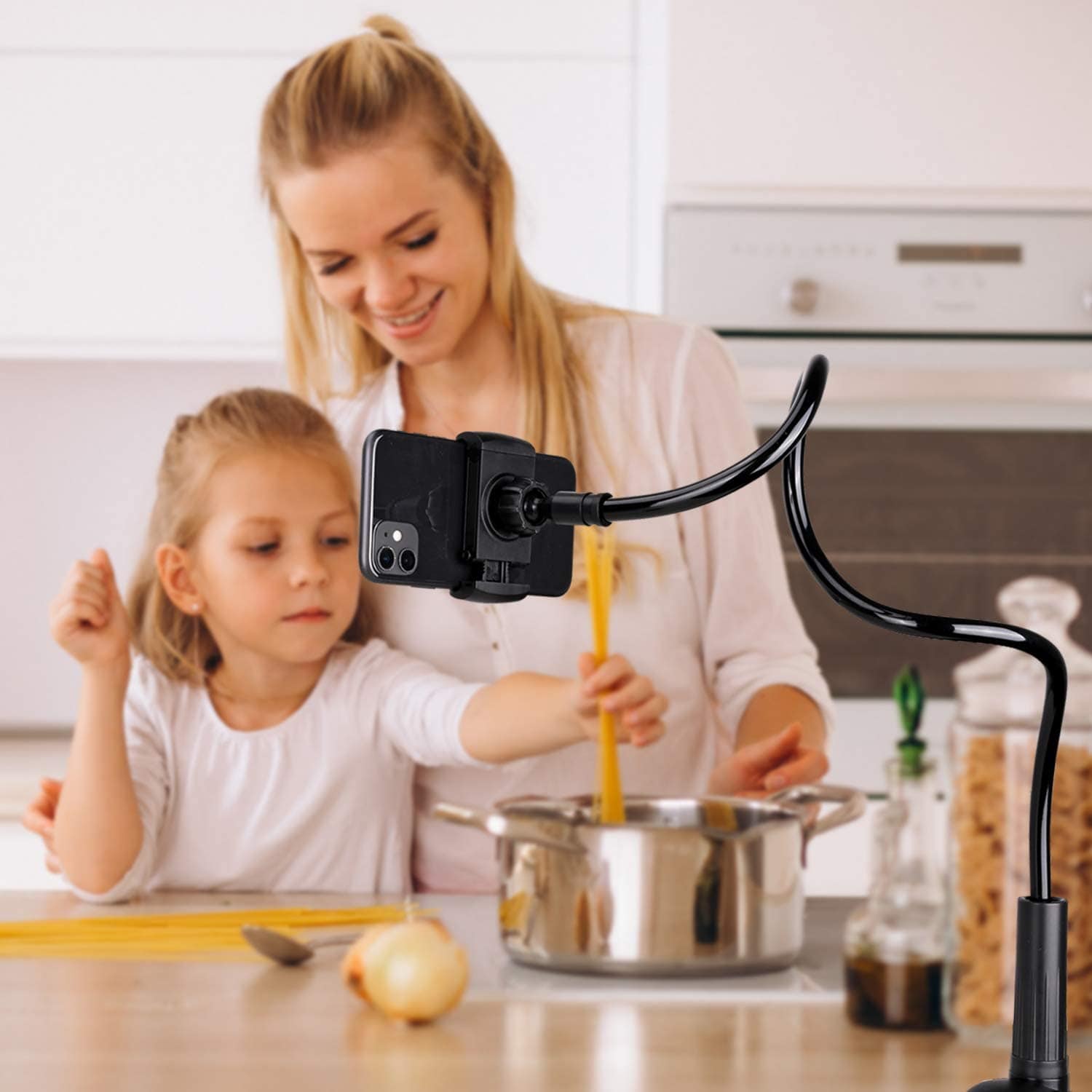 Suitable for video calling, clicking pictures, follow recipes, binge-watching, recording videos, and much more. A flexible 30'' arm and 360° rotating ball joint make it easier to set the screen at a comfortable viewing angle.