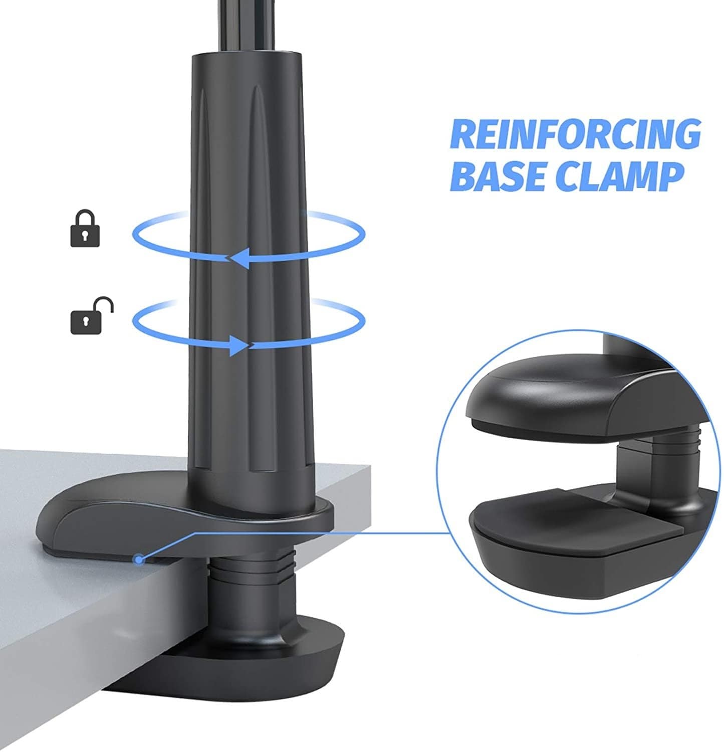 Easy to Use: Place the base clamp on a strong surface and twist the knob to tighten/loosen the clamp. The clamps are provided with anti-slip layers on both sides to avoid any damage to the holding surface.