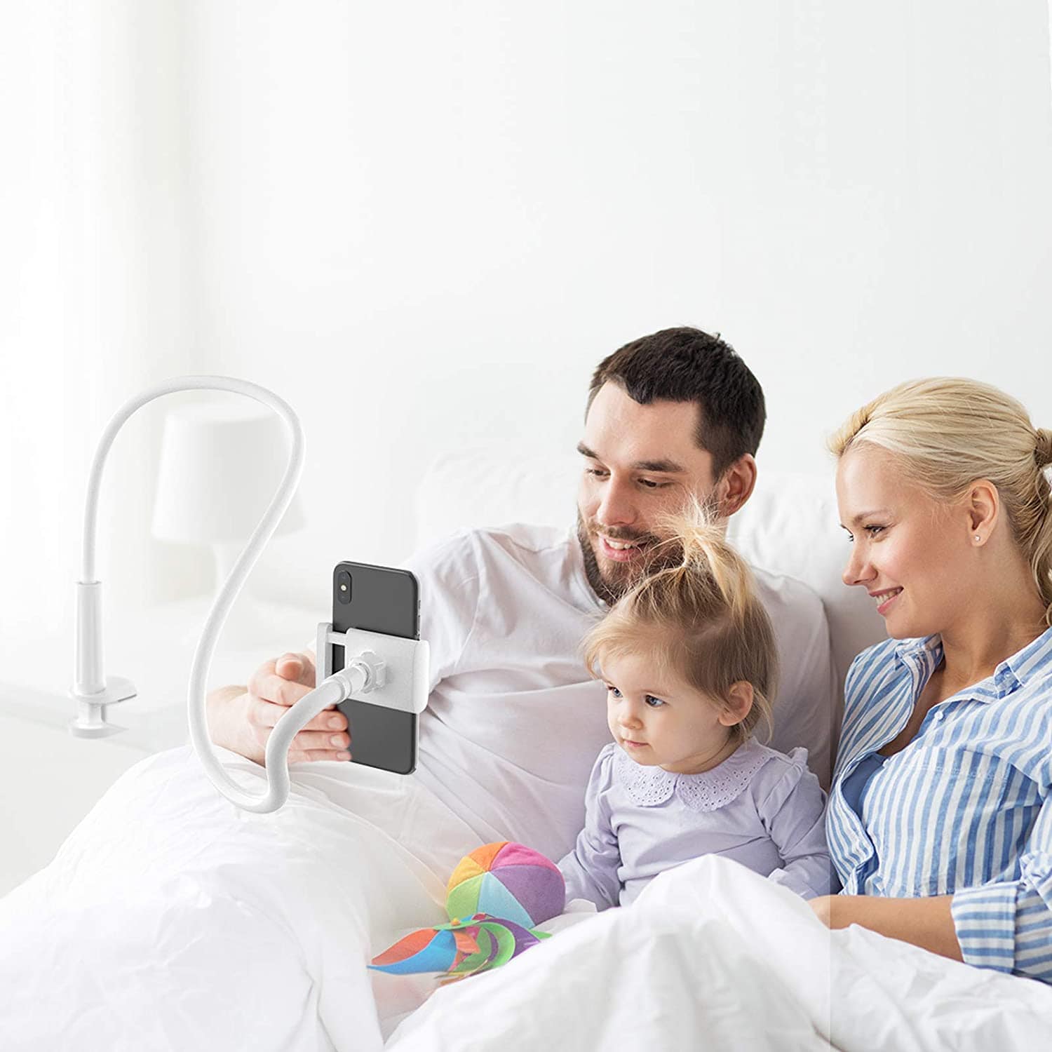 Wide Compatibility: This versatile phone holder can support all smartphones, phablets, tablets. The telescopic phone mount strongly holds your phone without leaving any scratch.