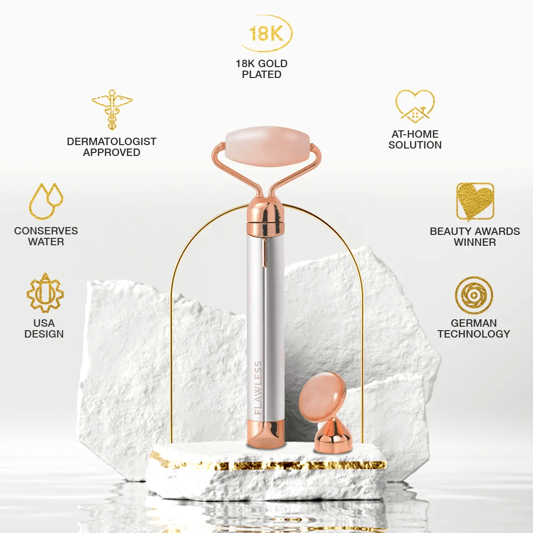 US-German Fusion: US-design and German vibrating technology, fused into one sleek, elegant, and easy-to-carry Flawless Roller.